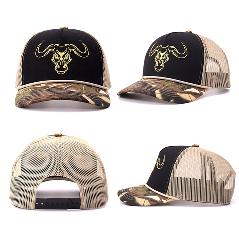 Benutzer definierte Logo 5-Panel Mesh Trucker Hut mit Kordel, hochwertige Baumwolle Trucker Hut, benutzer definierte gestickte Trucker Hut